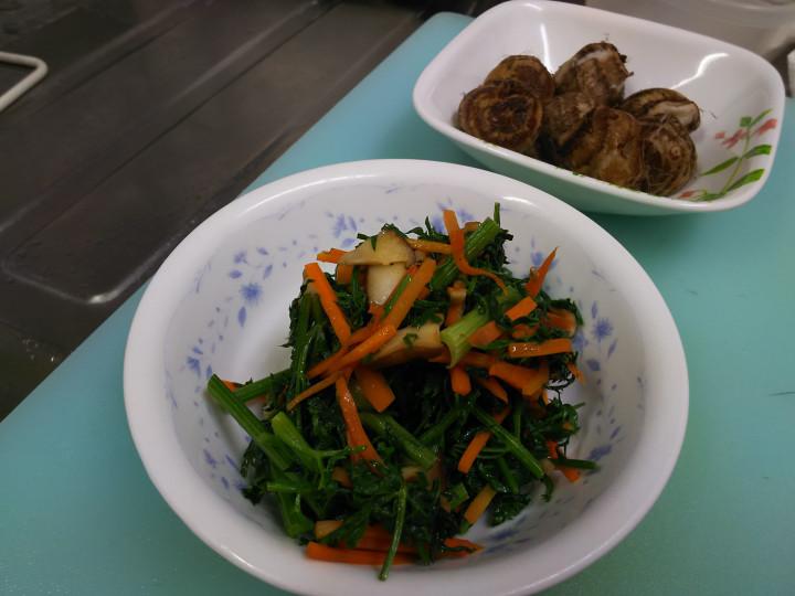 夕飯は、人参の葉っぱと椎茸の中華炒めと、