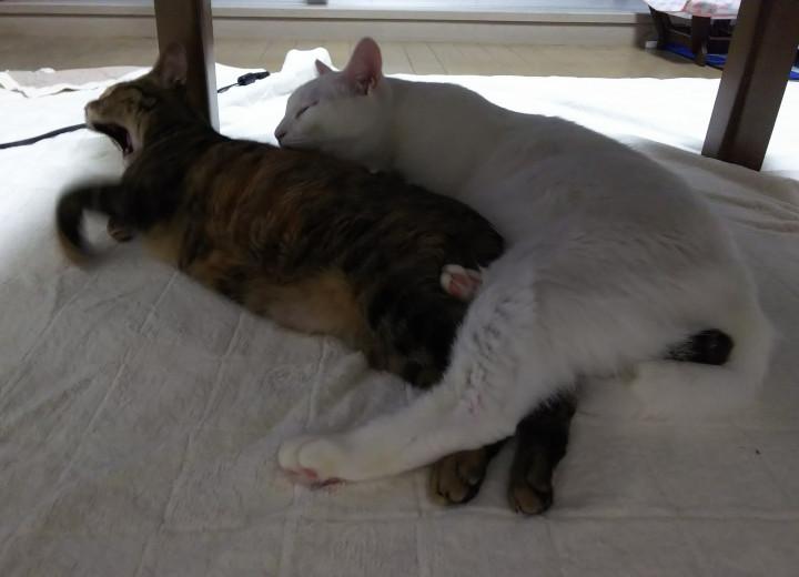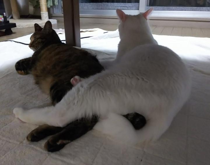 でも、昨日ホットカーペットをつけたら…寄り添ってた(^_^)