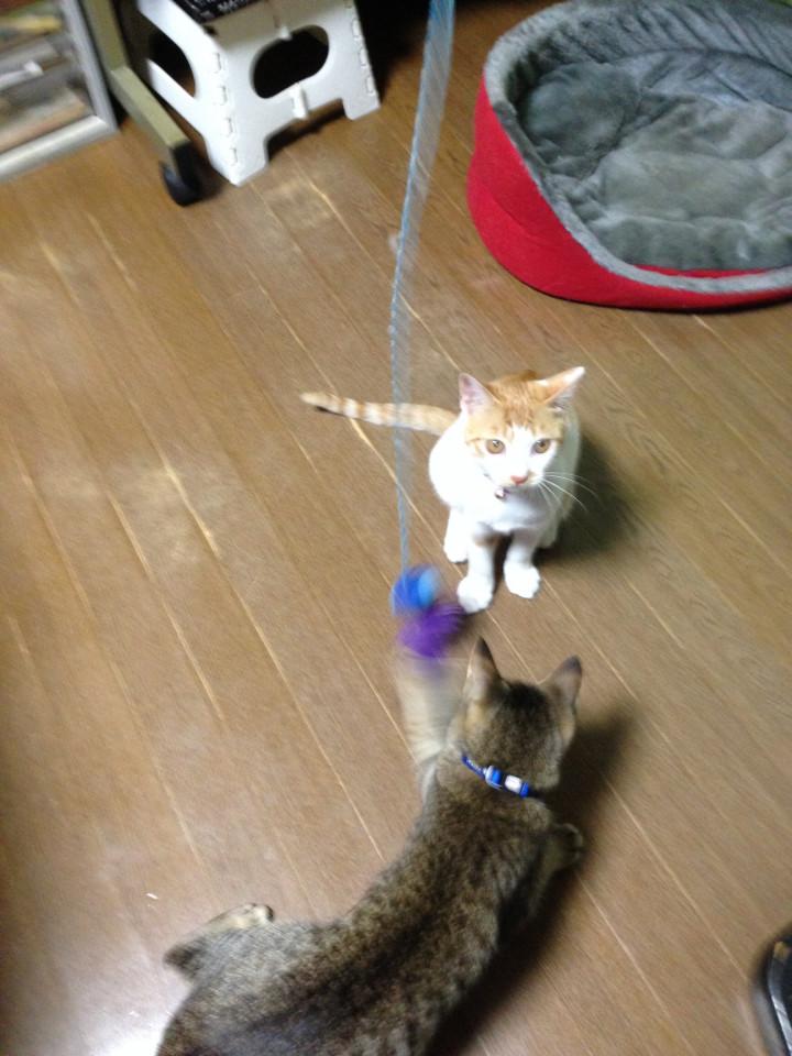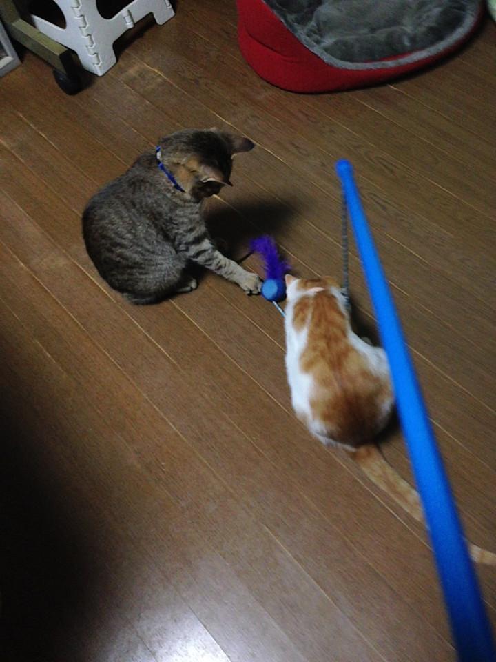 1時間近く遊んでも、茶々は遊び足らない様子で、オモチャを床に置いてあげたら、暫くじゃれ続けて居ました。