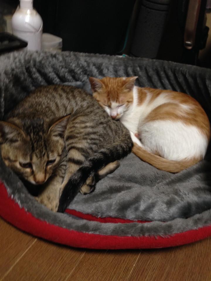 茶々は抱き上げて撫でれば、直ぐにゴロゴロ喉を鳴らすし、リオナは自分から撫でてと喉をゴロゴロ鳴らしながら、擦り寄って来る子です。