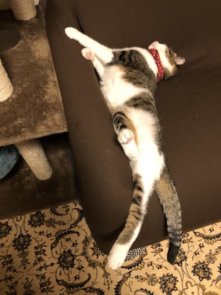 すごくキツそうな寝方でした!.(´゚艸゚)ププッ