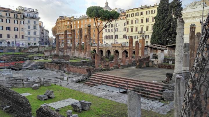 歴史的地区の中心、パンテオン近くの野良猫サンクチュアリー→古代ローマ遺跡