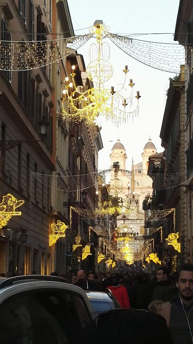 高級ブティックが並ぶ、スペイン広場前の通りのイルミネーション、