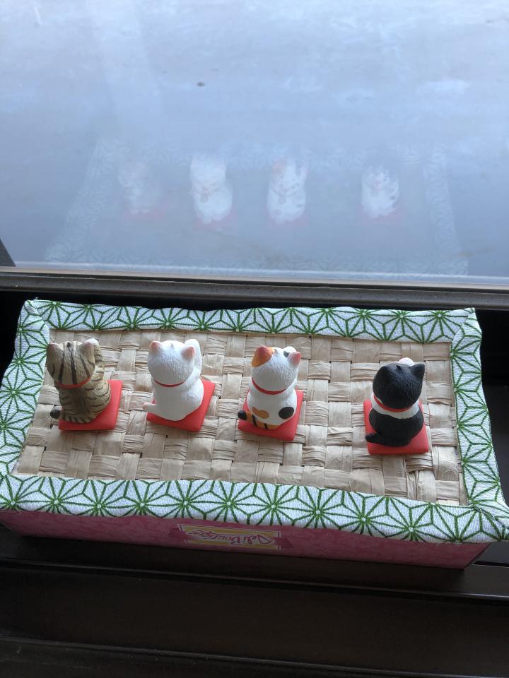 窓から外が見えるようにテッシュの箱に乗せました。