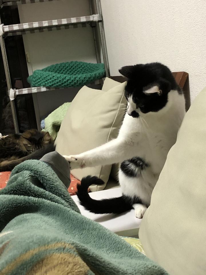 ちょびが足にタッチしてます。