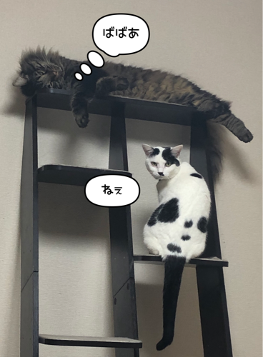 「 ネェ!! あたちにもゴハンちょーだい 」