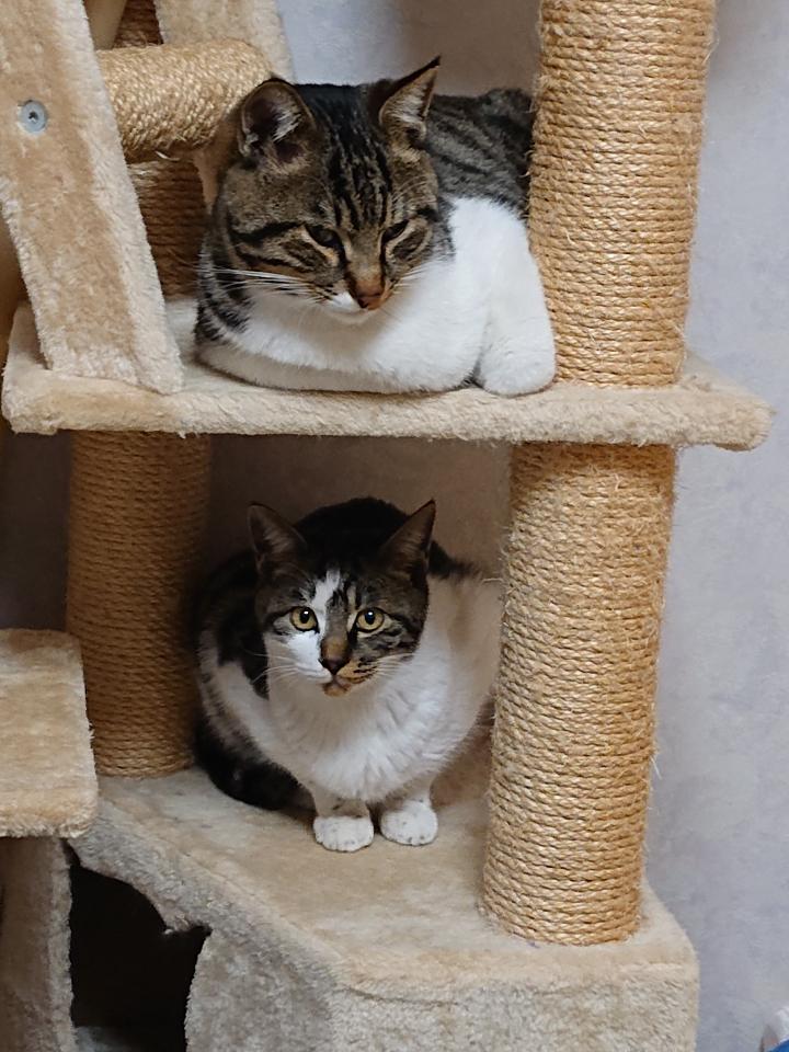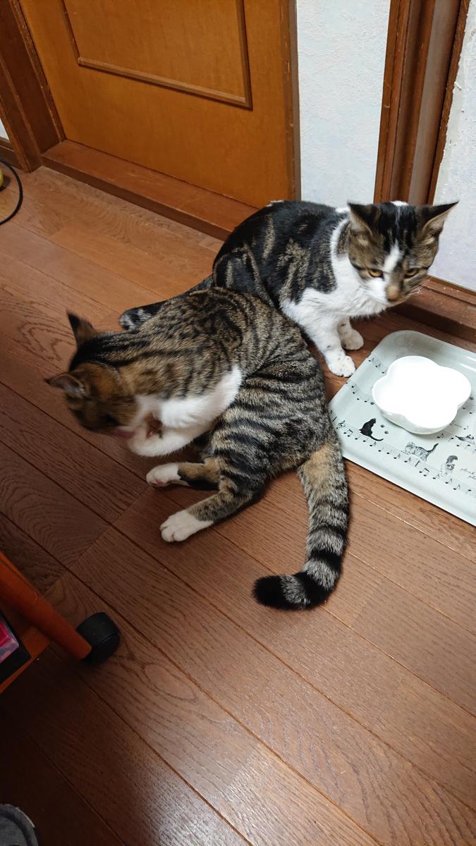うちの自由猫達には申し訳ないが、自由に出入りしていた部屋が2匹の保護部屋になってしまって不満そうです。