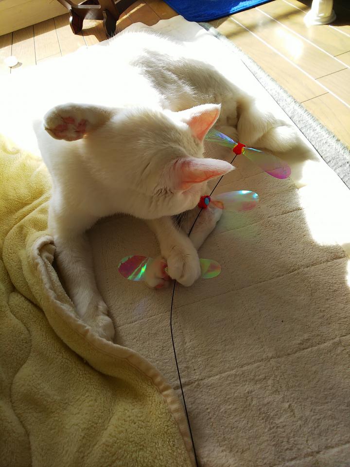 ちーちゃんはチョイチョイしただけで終わりですが、れーゆんは間に休憩はさみながら(人間が)かれこれ二時間位遊んでいます。
