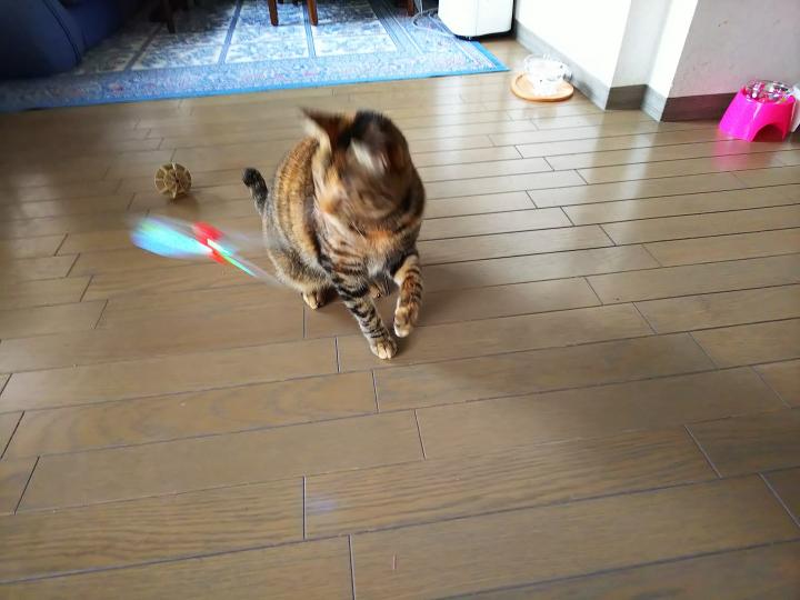 今朝ホームセンターで買った福袋に入ってたオモチャで、猫達は遊んでいます。