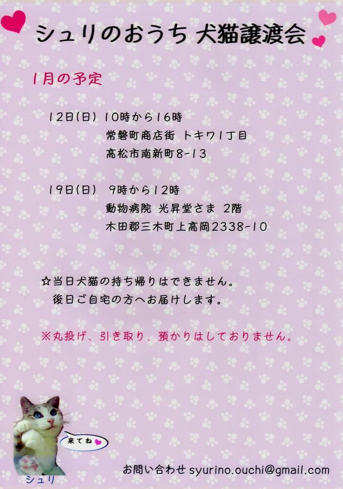♥シュリのおうちの譲渡会のお知らせ♥