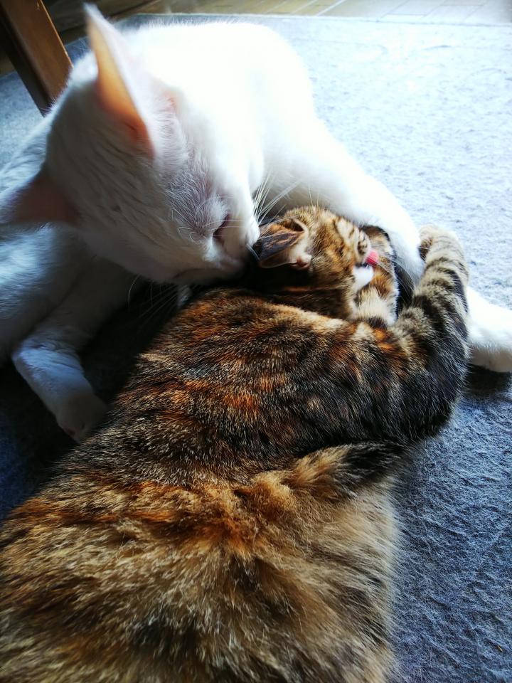 毎日遊びたがるレーズンの相手を、子供に任せました。子供は私とは違う遊び方をするので、猫達も嬉しいようです。