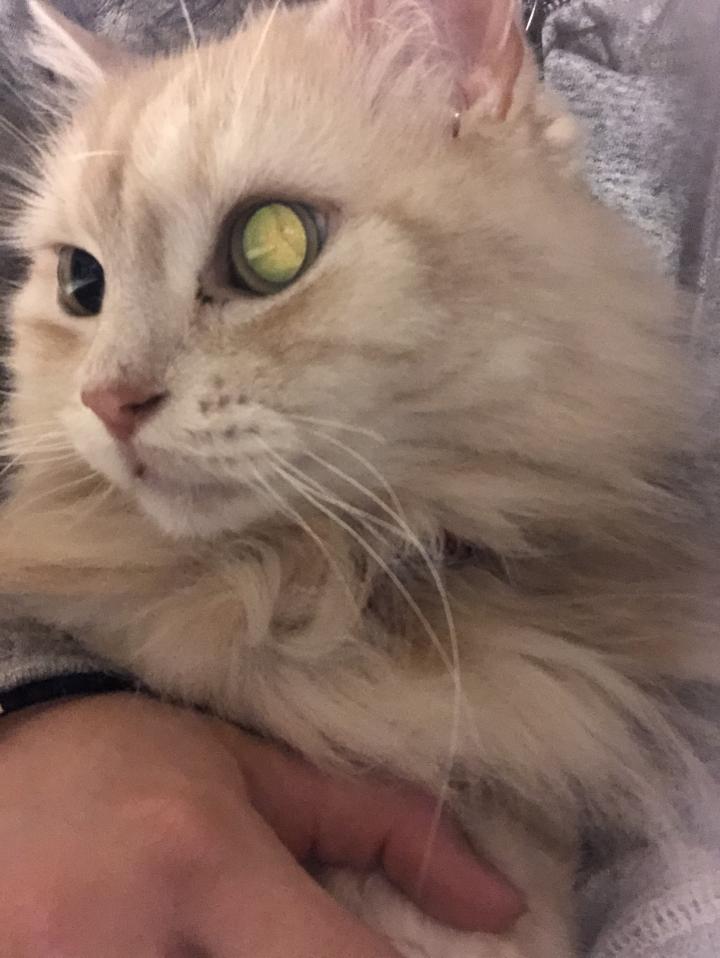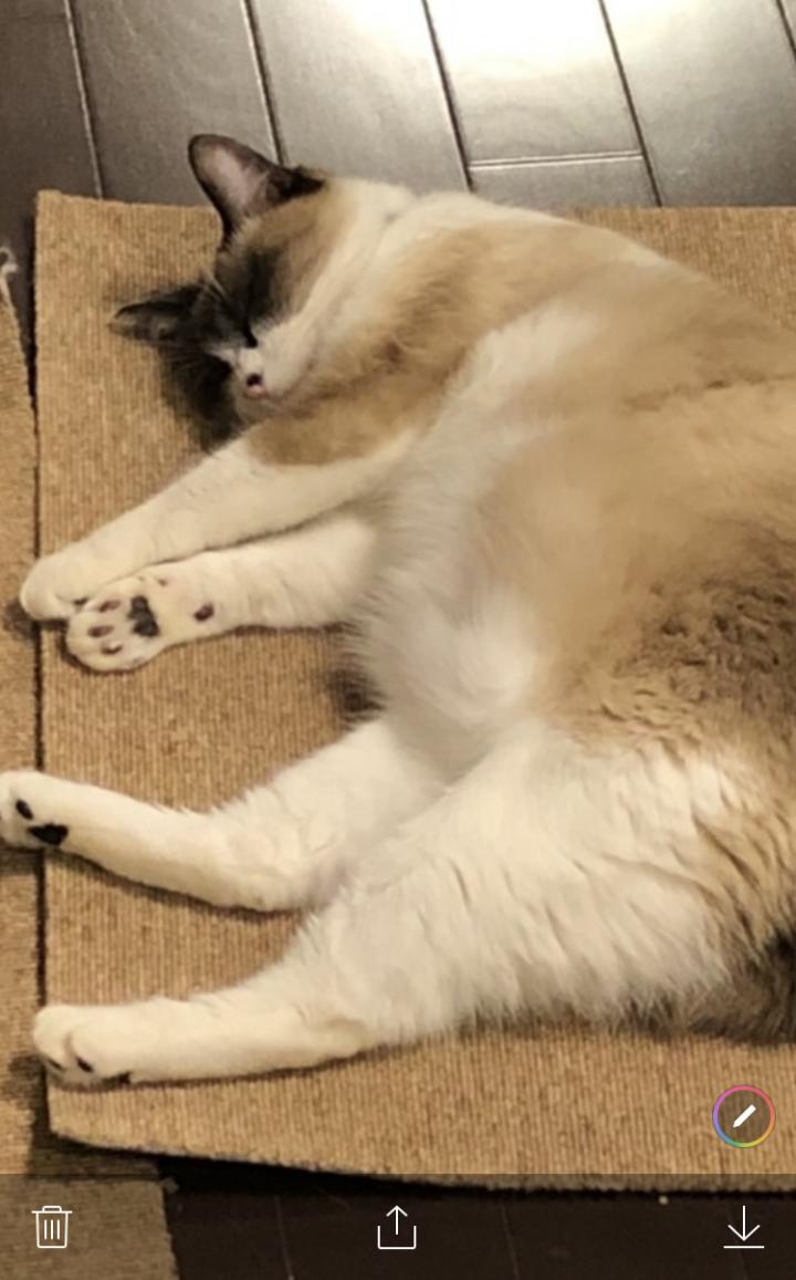 うちに、やって来て、ほぼ1年。多分7歳くらいに。我が家に来た時、毛玉だらけで、ガリガリで、3.9キロ。お尻付近がペタンコ。