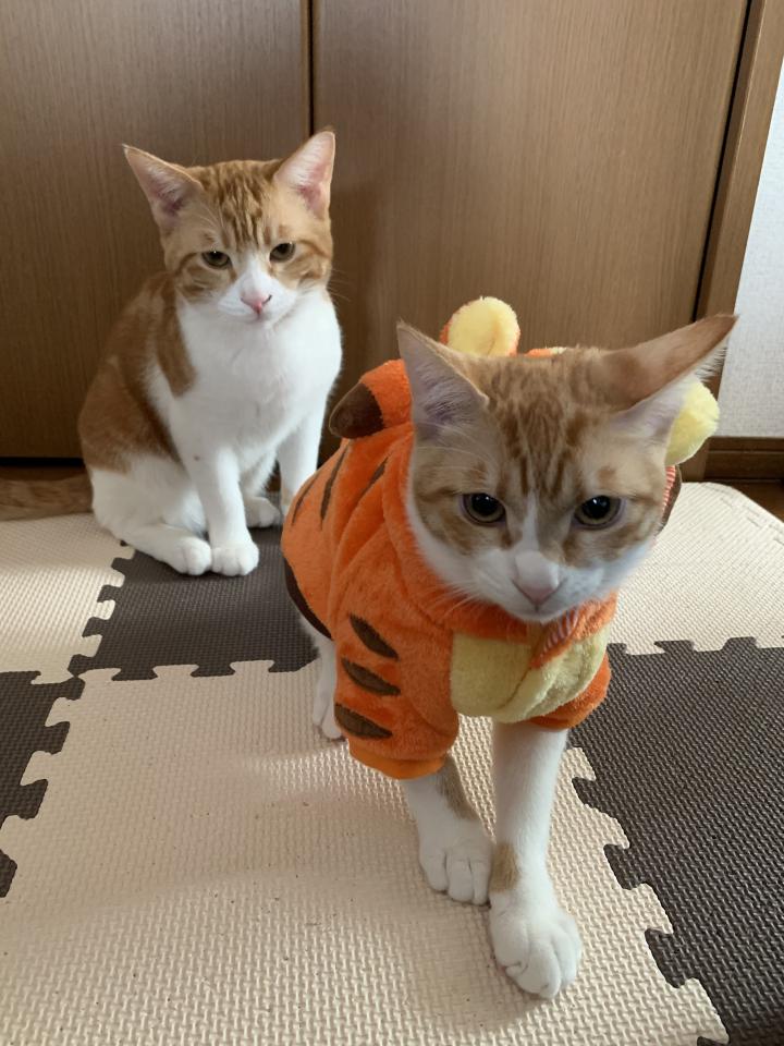 でも、ティガーちゃんはお洋服嫌いだから、男の子たちが病院に出発してから、脱がせてあげました(笑)