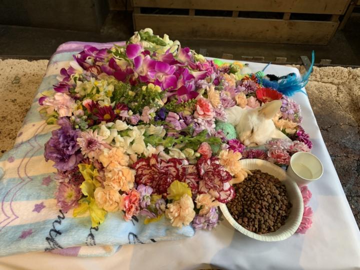 (ケージの中には ゆうちゃんの 遺骨があります)