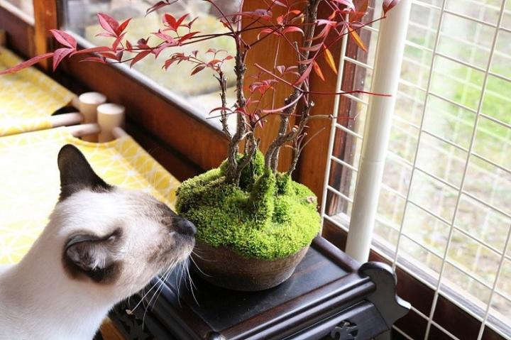いい感じで苔生して紅葉しているので部屋で鑑賞しようと持ち込み