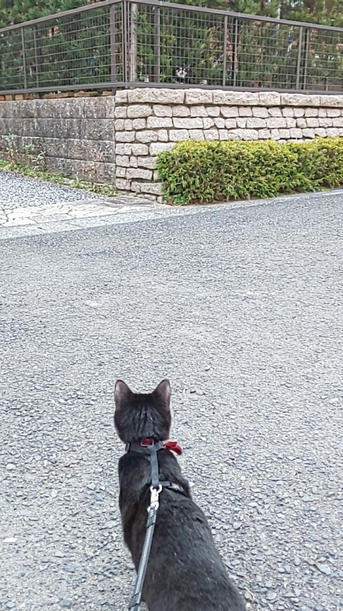 するとジジはソロソロと向かっていこうとするのでストップさせ、ワンちゃんもじーっと見つめてその場を離れました。