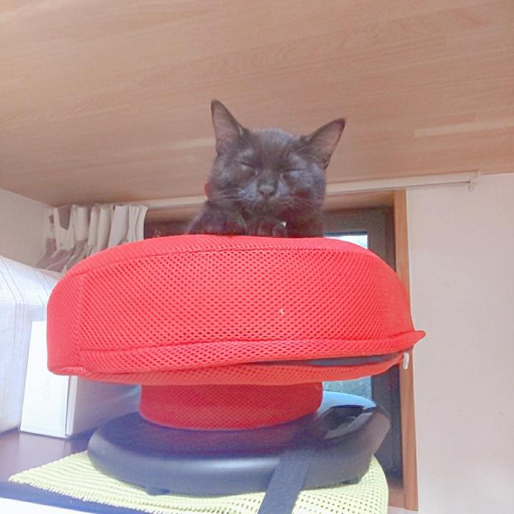 それからはいつもの仕事場の赤い椅子で私を見下ろし、そのまま寝ちゃいました☺️