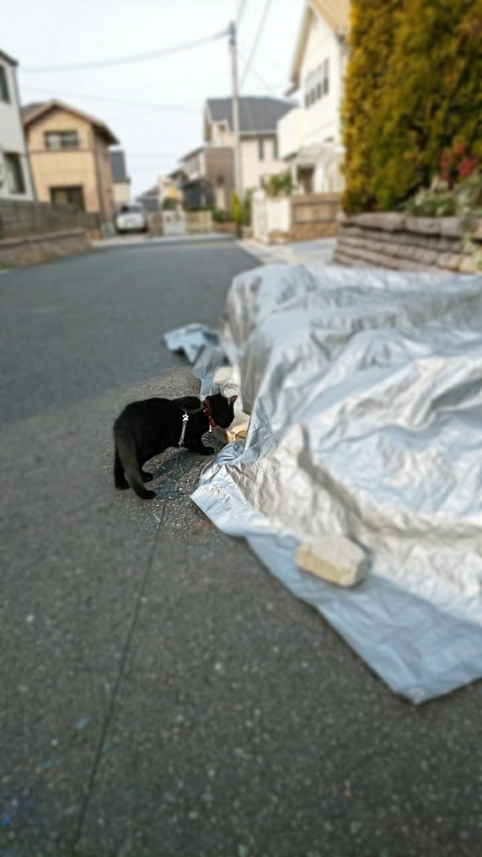 洗濯物干し、掃除、トイレ、ごみ捨てで外に出ようとすると一緒に行く!と。