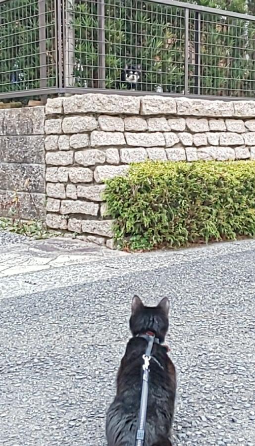 喧嘩でもするかも?吠えられる~とドキドキしましたが、そんなことなくお互い見つめあい。