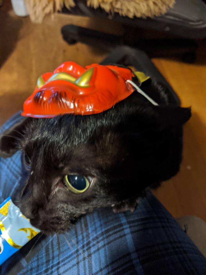 去年は嫌がってましたが、今年はちゃんと鬼面をかぶってくれました。
