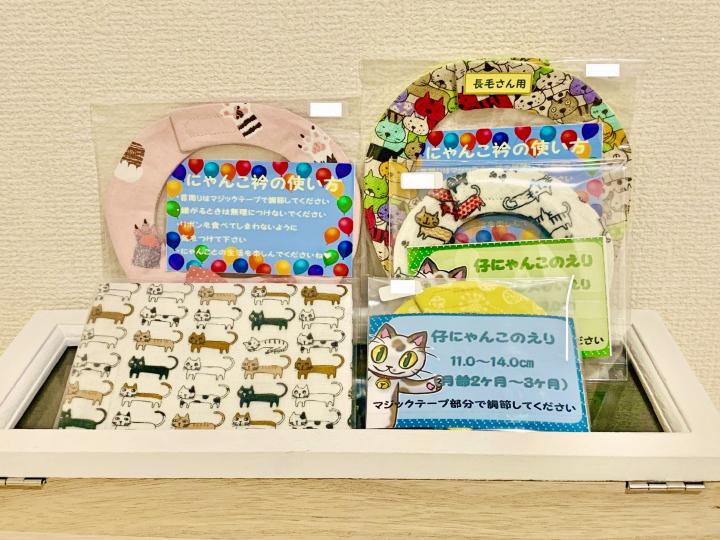 我らが(?)もんちゃんと双子猫さんの、にゃんこ衿。