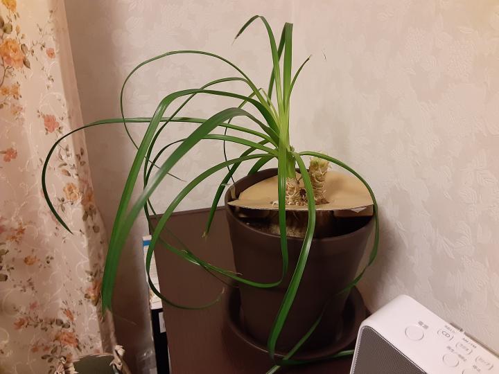 朝4時、ドシンと音がして起きたら鉢が床に転がり土は散乱、2本あったしっぽがポッキリ折れ1本に、目が点、そして掃除