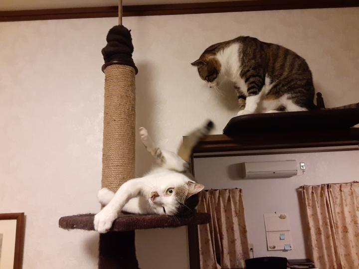 そして掃除終了、ニャン逹なにもなかったように遊んでました。反省なしワトソンカメラ目線