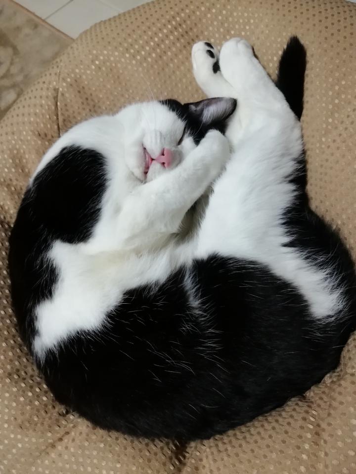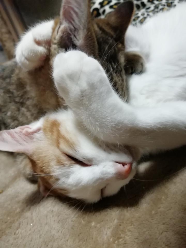 寝てるはぁちゃんの後ろに跳び込むはるくん。