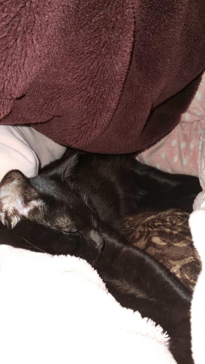 入れてーといって入ってくるのは良いけど、布団がぴったりジジにかかるのは、ダメみたいで、私がドーム型?かまくら?みたいな感じに手で布団をジジにベタって触れないようにしなきゃいけなくてー。