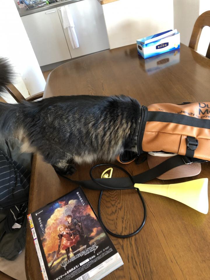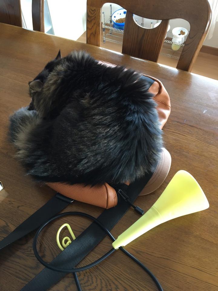 息子のバックに入ろうとしていました😁