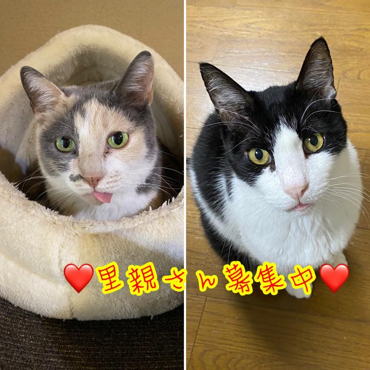 白黒ハチワレぜんちゃんと、パステル三毛のりりこちゃんは里親様を募集しています^_^