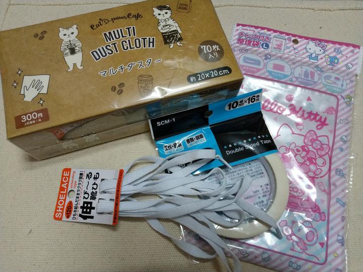 ワッツで細めの両面テープと作った新品マスク入れに袋を購入