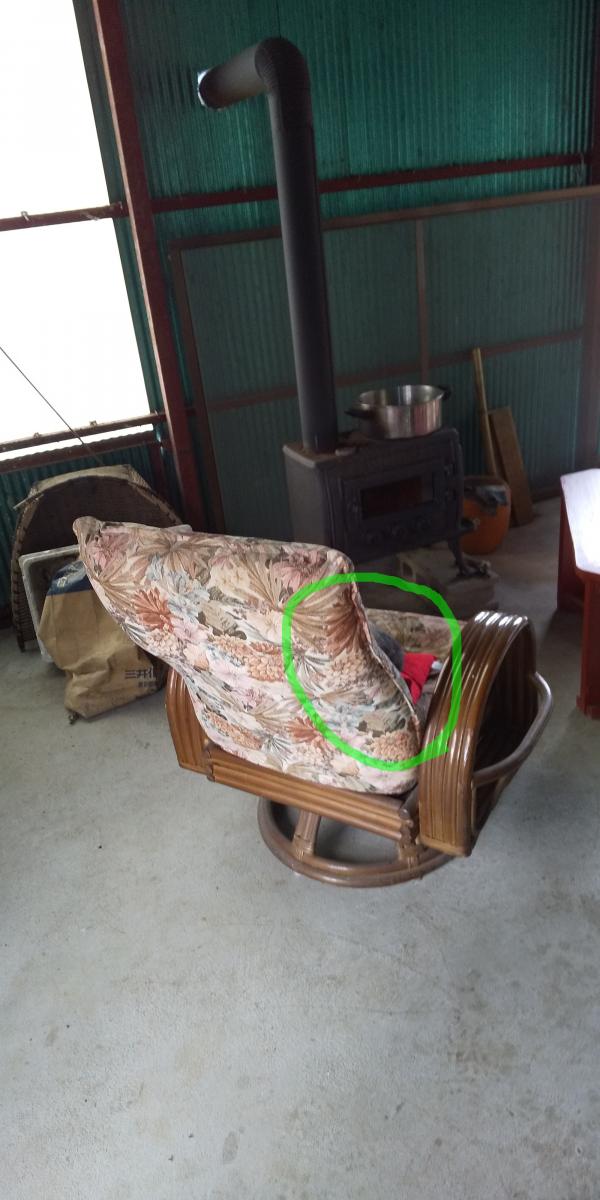 物置小屋の椅子の上に