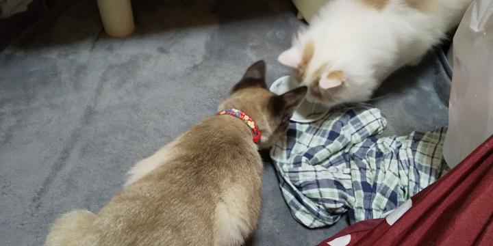 スイもちょびちょび食べなので、最近はシャルルが食べているのを見ると一緒に食べる