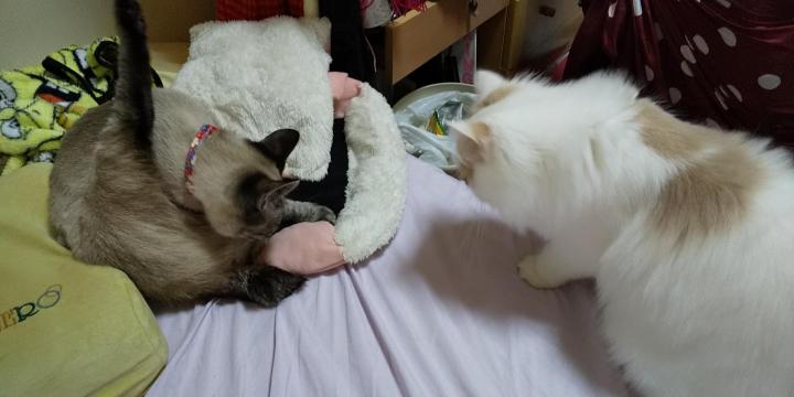 調べたら、マウンティングもストレスになるようなので、切り替えて 二人と遊んであげる時間を増やしました。