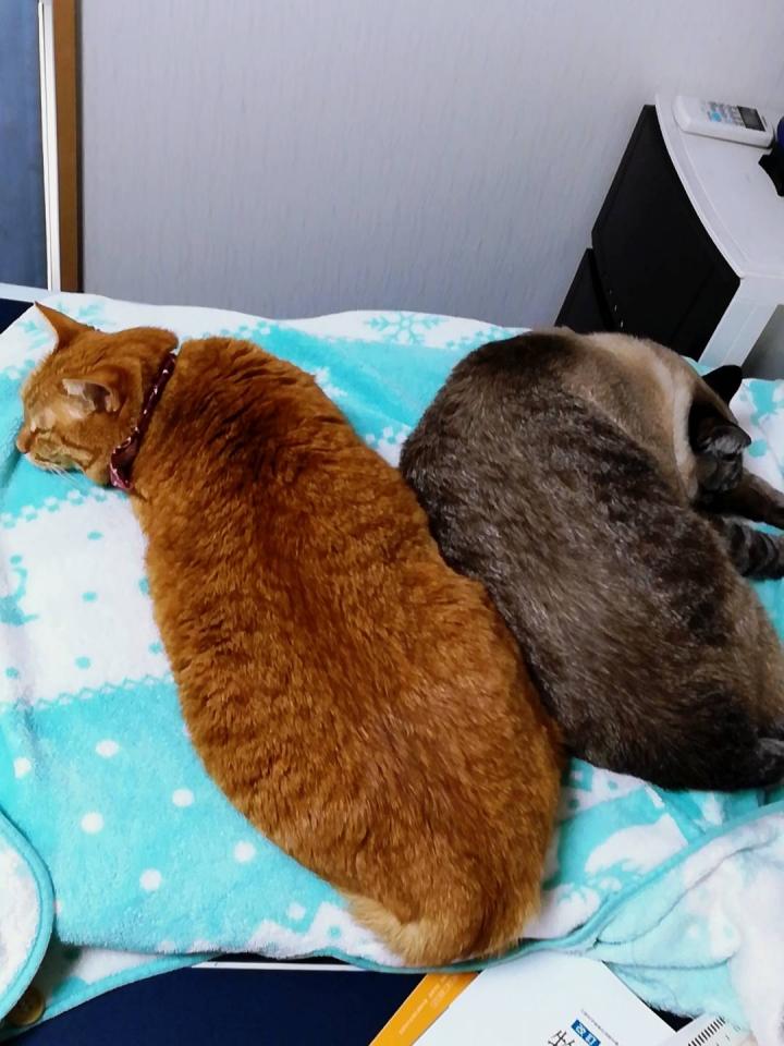 茶々とユキは、癒し効果のある「猫のせにゃか」を兄ちゃん達に見せて、応援📣