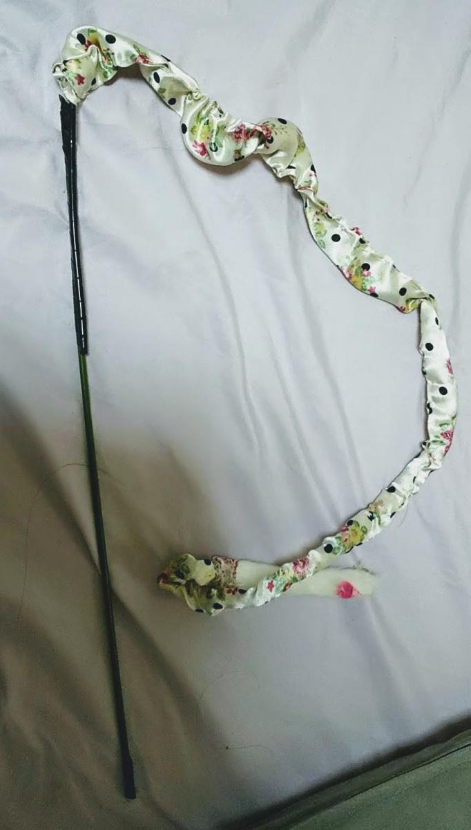 スカーフ部分には、レジ袋を挟み込んで、ちょっとおしゃれな猫じゃらしが完成しました🎵