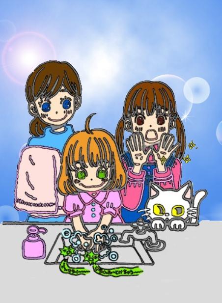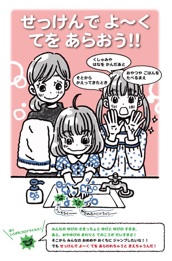川本三姉妹と一緒に学ぼう、手の洗い方!