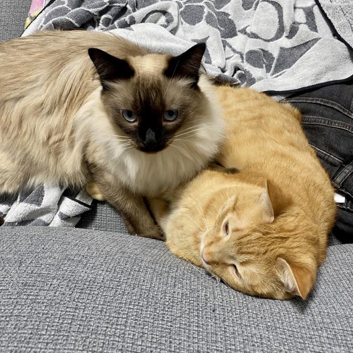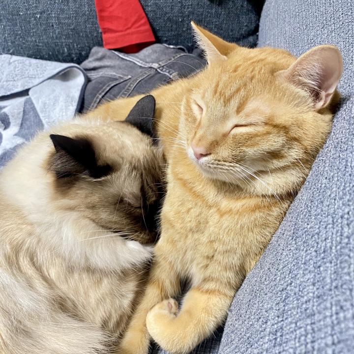 あいつはもうボクより大きいのに遠慮無しにのしかかって来るから本当に迷惑してるんだミャ🙀