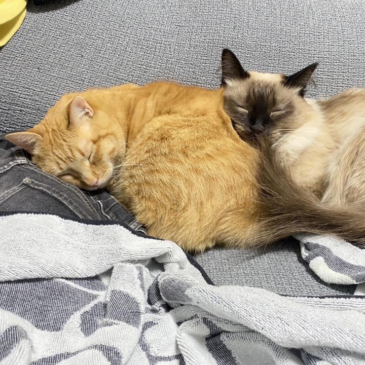 仕方なくボクも寝ようとするけどこれだけのしかかって来ると本当に重いんだミャ🙀