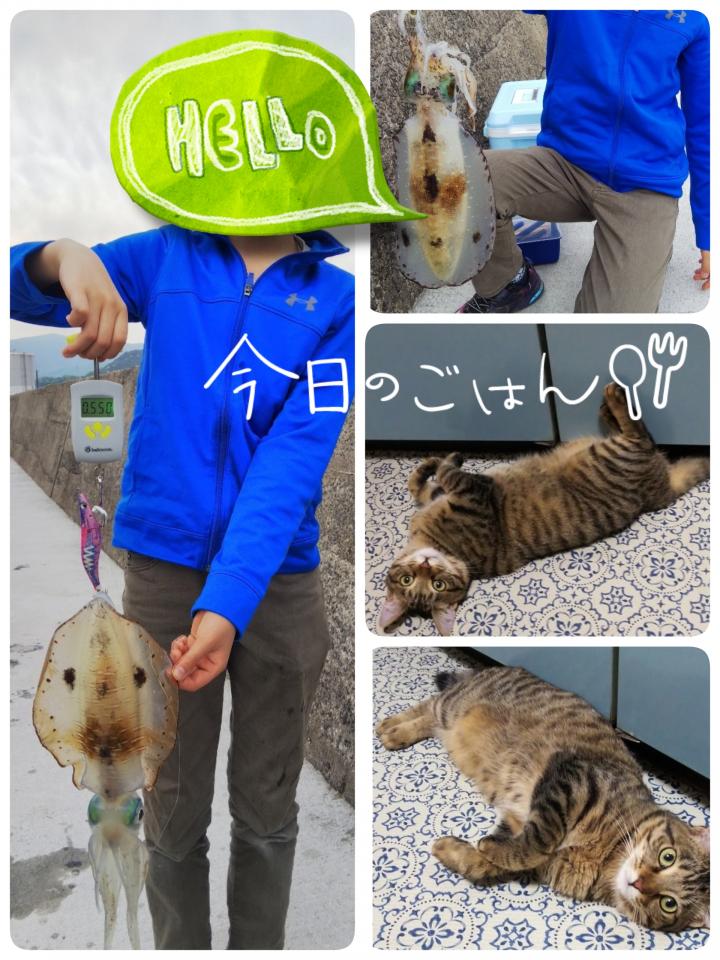 昨日、パパ様とお兄ちゃんが近くで釣りをされたそうで、こんな大きなイカが釣れましたと。甲いかと水いか、それと鯵が釣れたそうですよ😃すごいですねー⤴️⤴️
