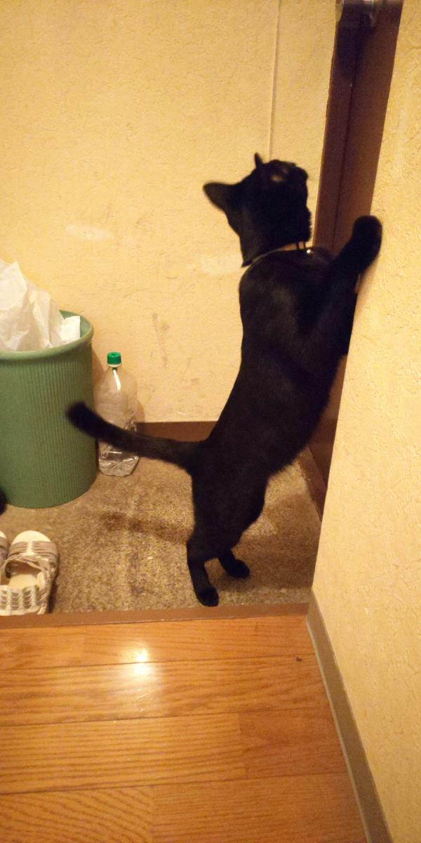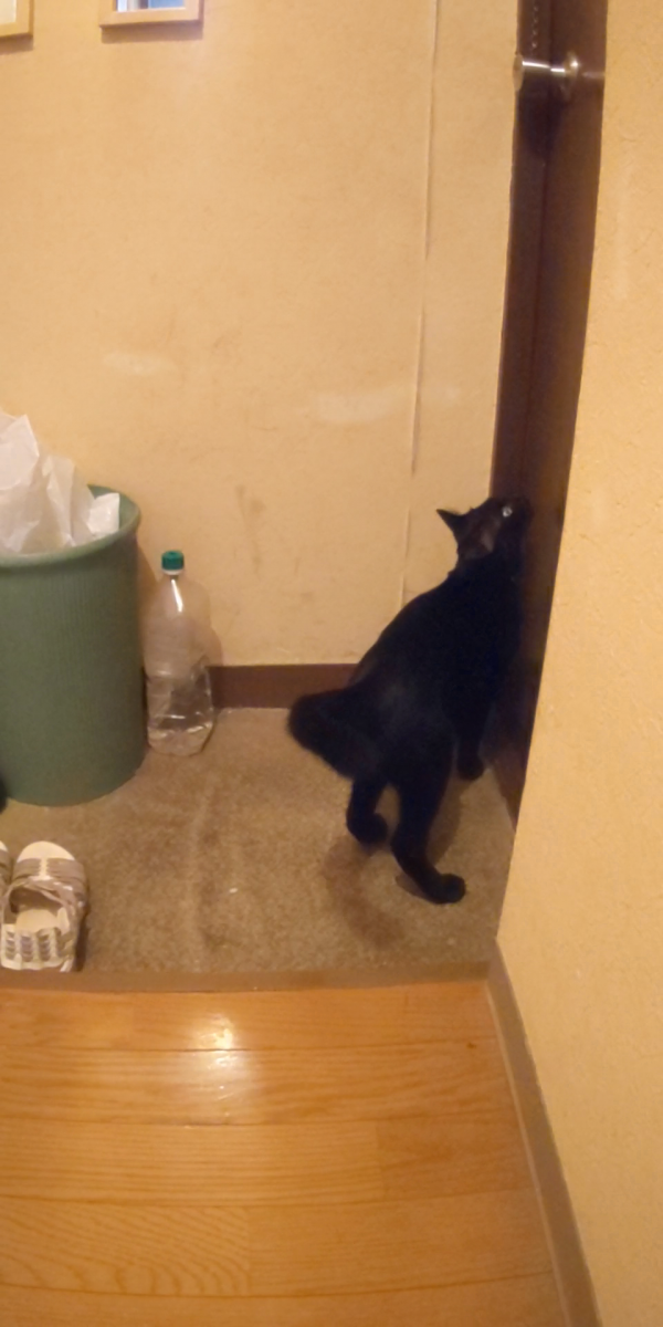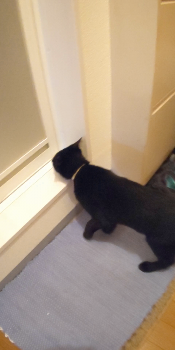 GWがあったせいか、花火は寂しさで玄関をウロウロニャーニャー。
