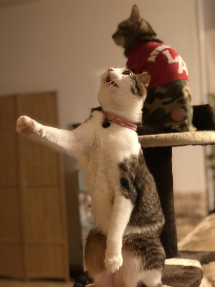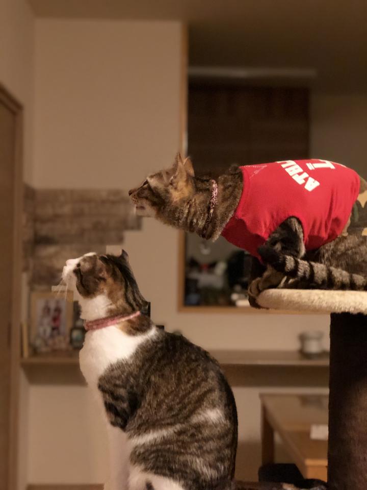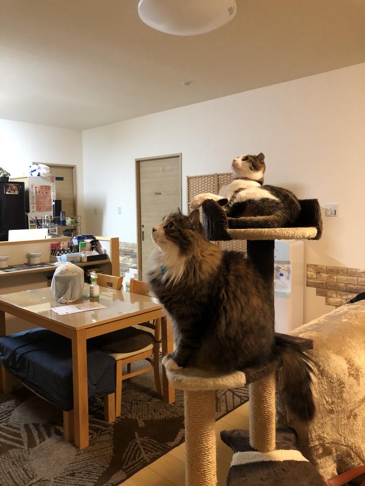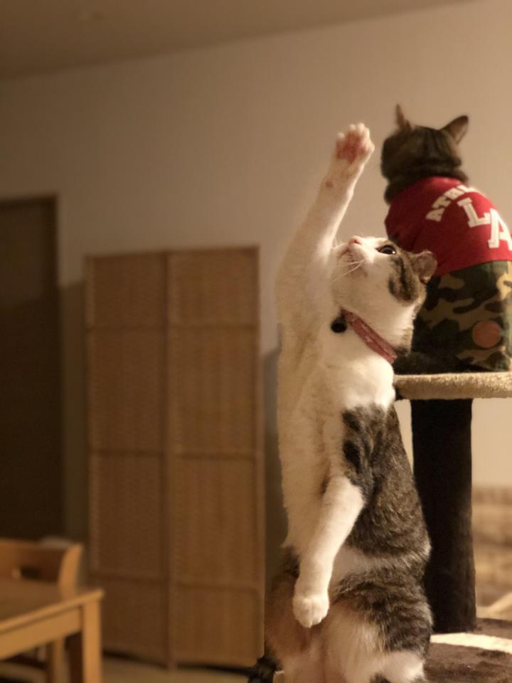 クモさん逃したけど、ニャンズは落ち着かない。・゚゚ '゚(*/□︎\*) '゚゚゚・。