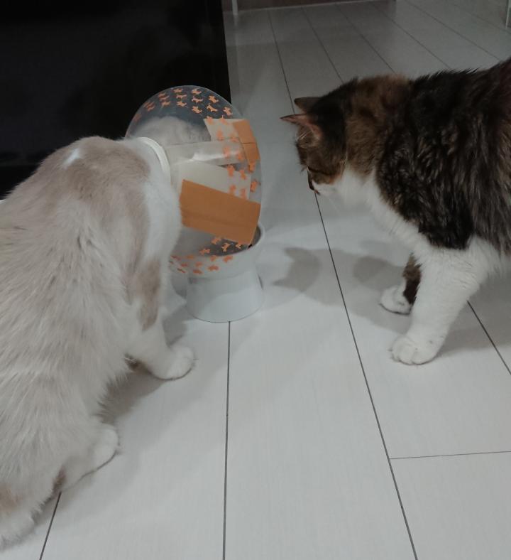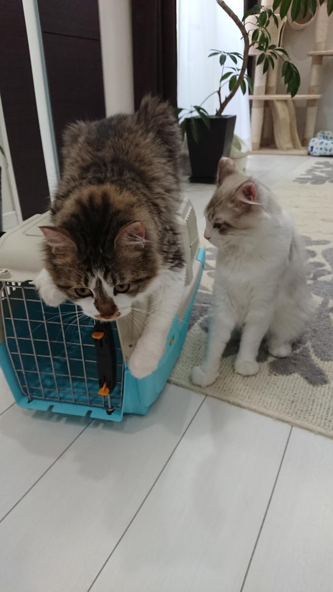 自分の時は不在の間メイリーに自分だけの城のように振る舞われ、帰ってくるなりイカ耳でシャー!!!言われたのに、不在のメイリーをにゃおにゃお鳴いてあちこち探し、帰ってくるなり心配そうに寄り添うシャオくんの姿に心打たれた。何て優しい子……!!!