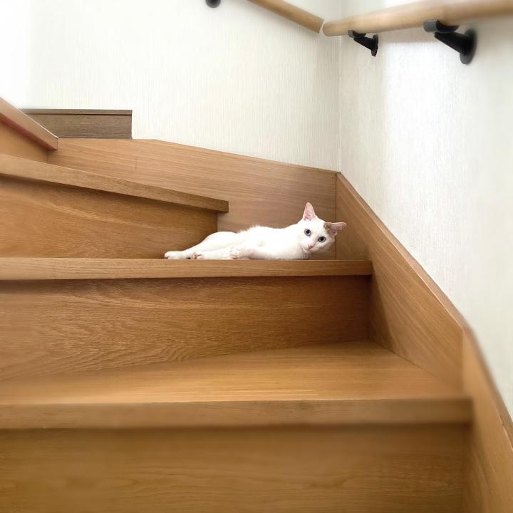 蒸し暑さを階段で凌ぐ坊っちゃま...