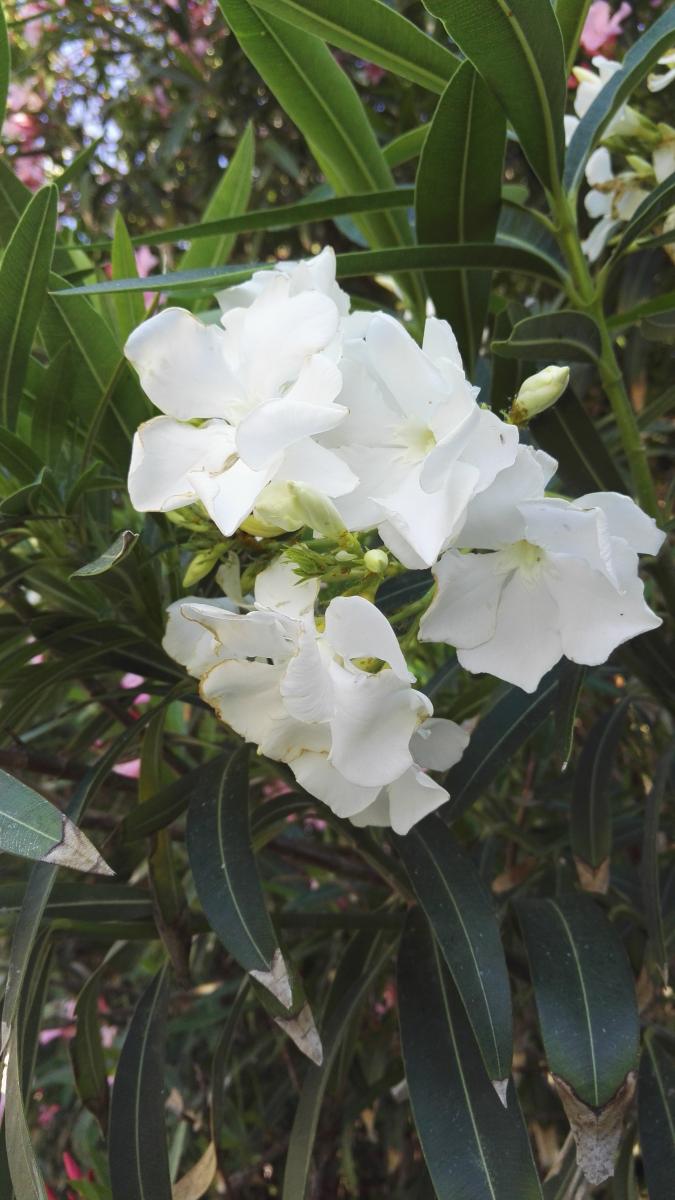 真夏の花、キョウチクトウ…ブーゲンビリアさえ枯れる8月でも咲き誇る…が咲き始めました(^^)