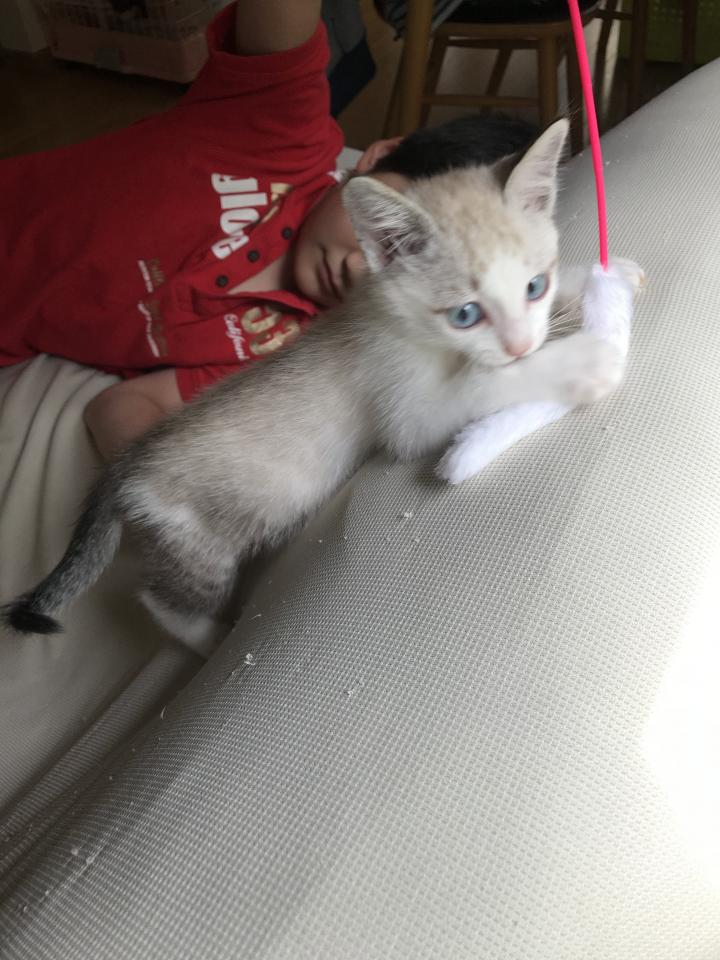 最近のお気に入りはソファの上で猫じゃらしにジャラされることみたいです❤️
