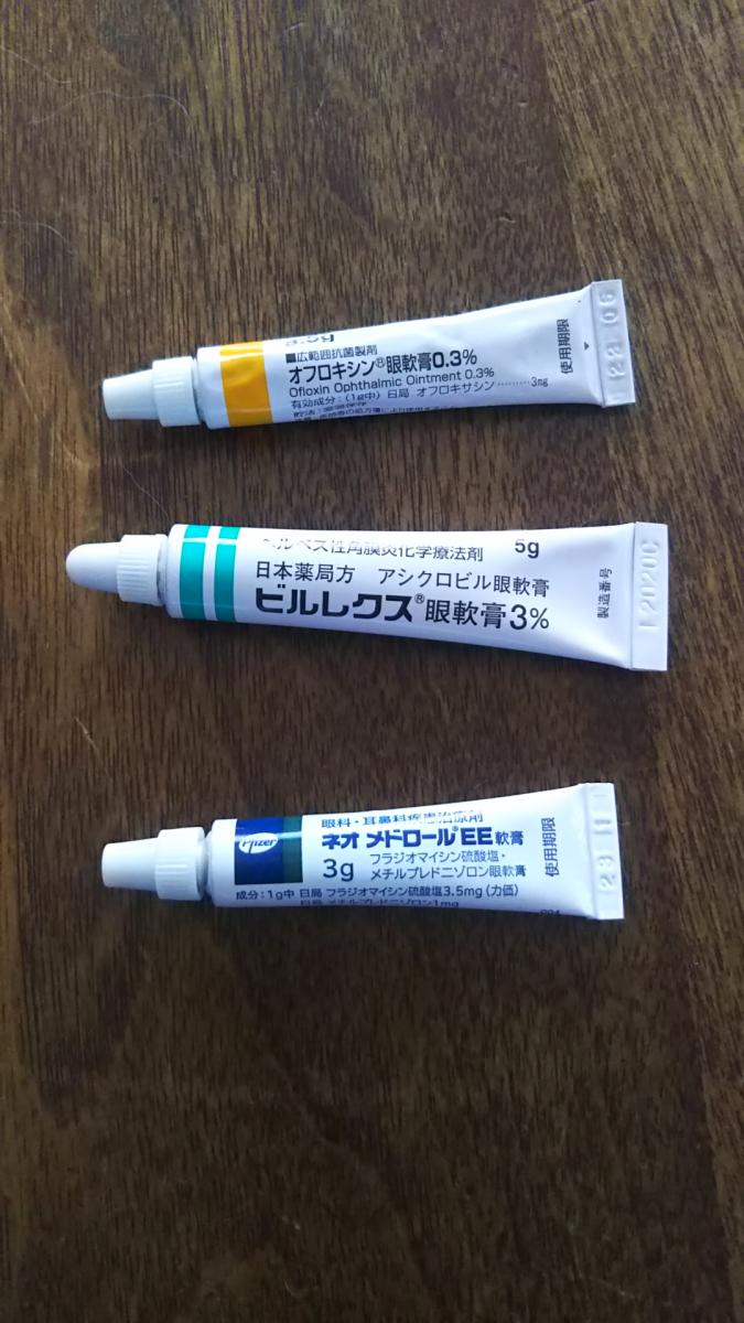 と出して来られたのが一番下のステロイド入りの眼軟膏
