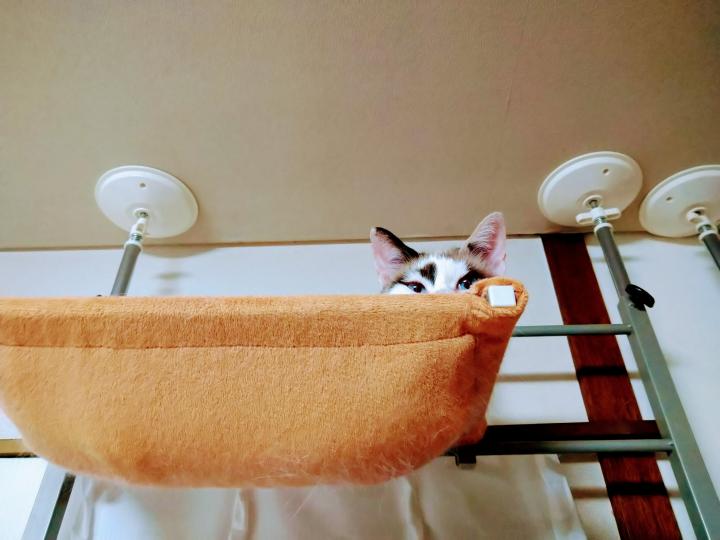 相変わらず、慢性猫風邪でお目々はクシュクシュしているけど、食欲もあっていつもご機嫌。
