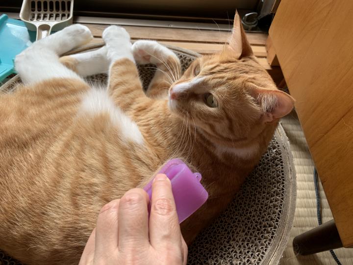いよいよ、新しい猫ブラシを試す日がやって来た❗️